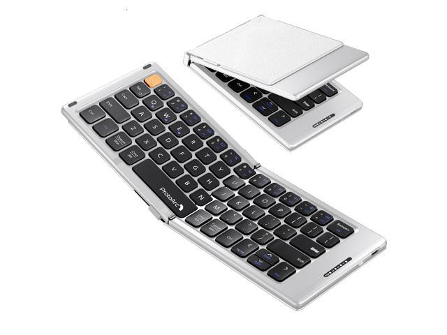 ProtoArc Foldable Compact Bluetooth Keyboard -Portable Bluetooth Keyboard with PU Leather Cover, Pocket-Sized Wireless Travel Keyboards for iPad, iPhone, Smartphone, Tablet, Laptop, XK04 -White/Silver