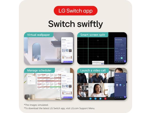 - You can divide the entire display into 6 through the app, change the theme design, and launch the video calling platform with mapped hotkeys with LG Switch app.
