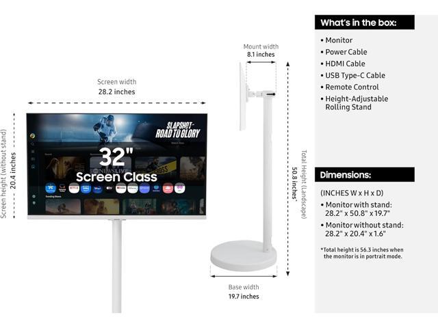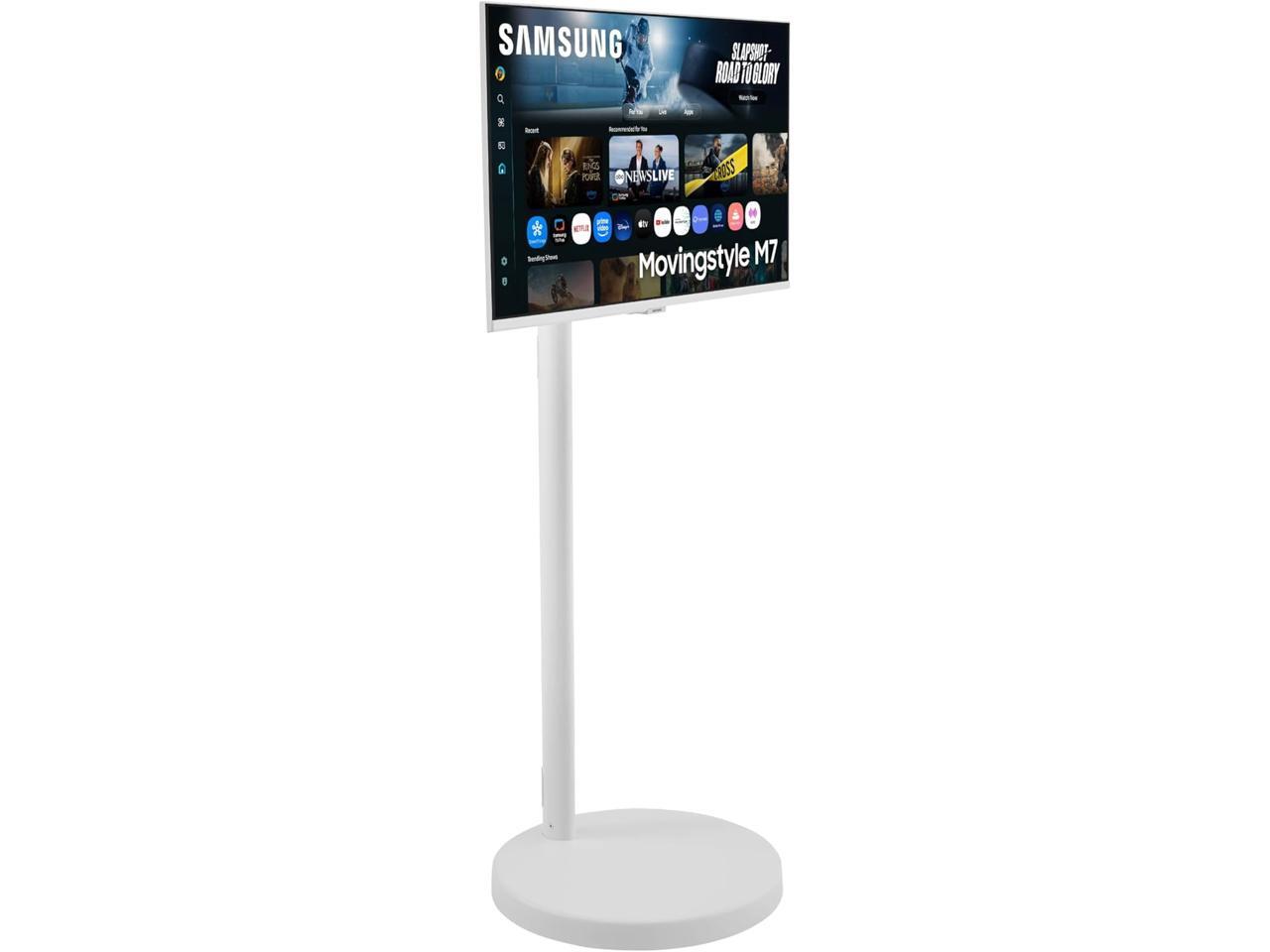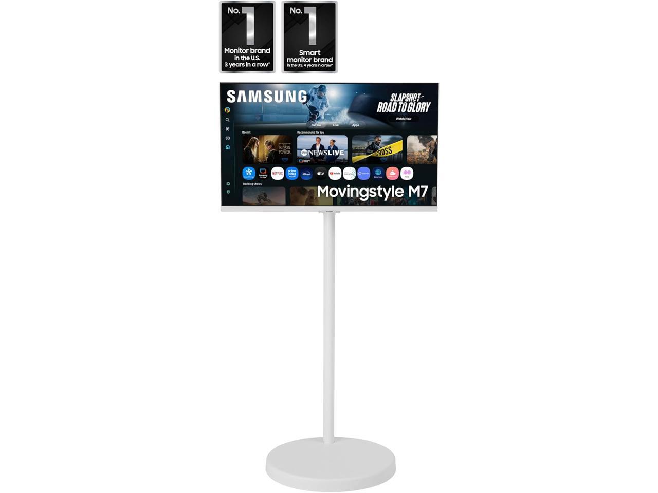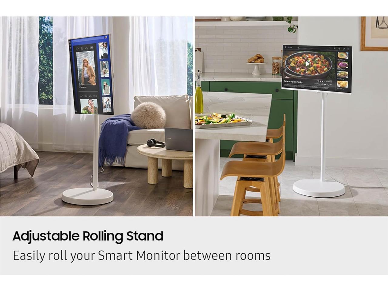 - The Samsung AI Smart Monitor M7 moves with you thanks to its adjustable rolling stand, making it easy to roll your Smart Monitor from room to room for next-level entertainment and everyday use.