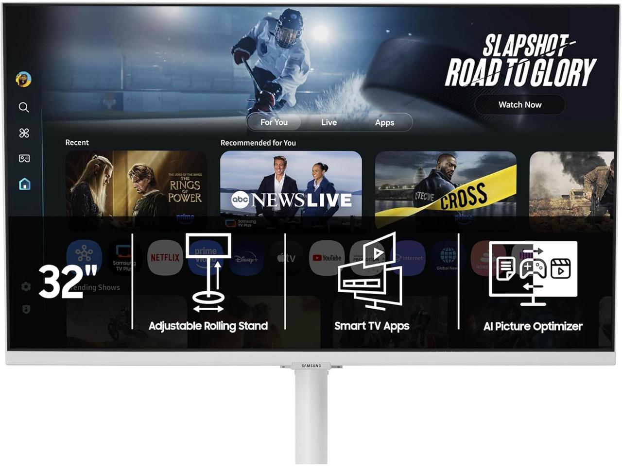 SAMSUNG 32 inch Movingstyle M7 UHD 4K USB-C Adjustable Rolling Stand, Smart TV Apps, Built-in Speakers, Gaming Hub, AI Picture Optimizer, SmartThings Modern White Smart Computer Monitor LS32FM701UNXZA