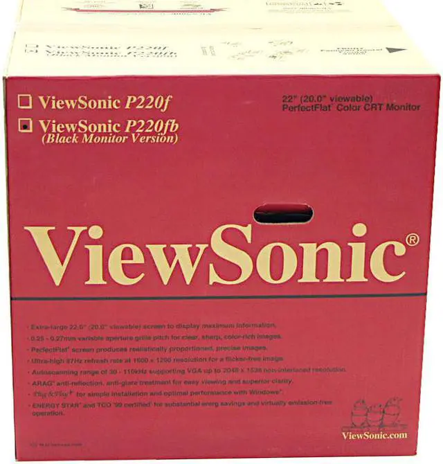 ![Alt view image 6 of 6 - ViewSonic P220FB Black 22" CRT Monitor 0.25mm aperture grille [at center], 0.27mm aperture grille [at corner] Dot Pitch D-Sub](https://c1.neweggimages.com/productimage/nb640/24-116-233-09.jpg)