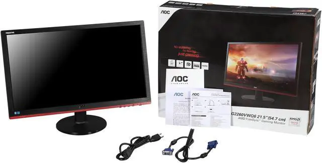 AOC Gaming G2260VWQ6 21.5" Gaming Monitor, Full HD 1920x1080, 1ms Response Time, AMD FreeSync, 75Hz, Anti-Blue Light, FlickerFree, DisplayPort/HDMI/VGA, VESA Compatible