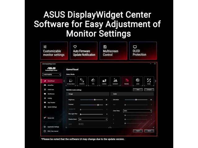 Exclusive ASUS DisplayWidget Center application allows users to easily access OLED Care Pro functions and adjust monitor settings using a mouse
