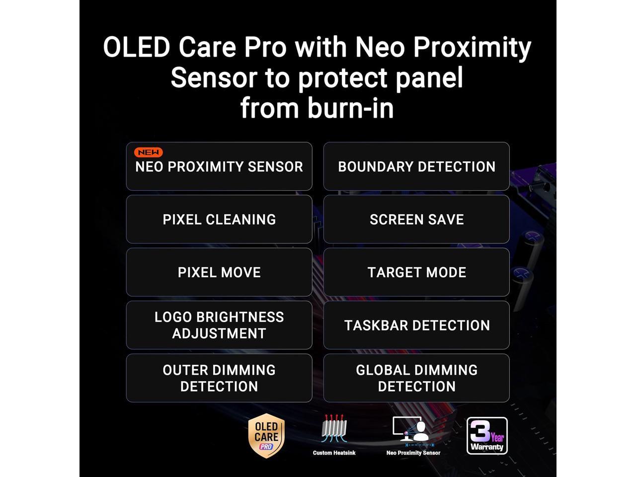 New ASUS OLED Care Pro functions with Neo Proximity Sensor that precisely detects when the user is away, switching to a black screen to reduce the risk of burn-in