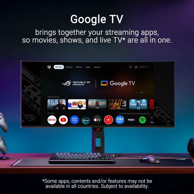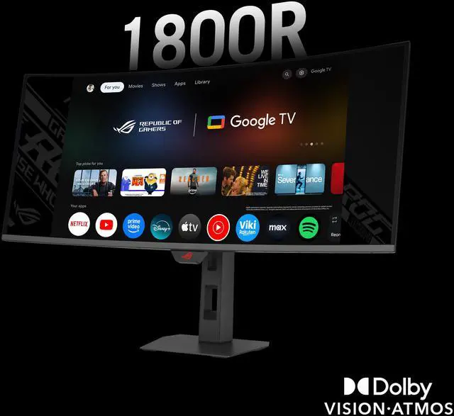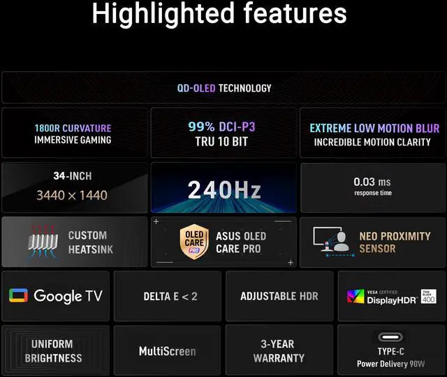 ASUS ROG Strix 34” OLED Curved Ultrawide Gaming Monitor (XG34WCDMTG) – 240Hz, 0.03ms, FreeSync & GSYNC Compatible, Android 14 Google TV, WiFi 6, NVIDIA GeForce Now, Dolby Vision, Dolby Atmos