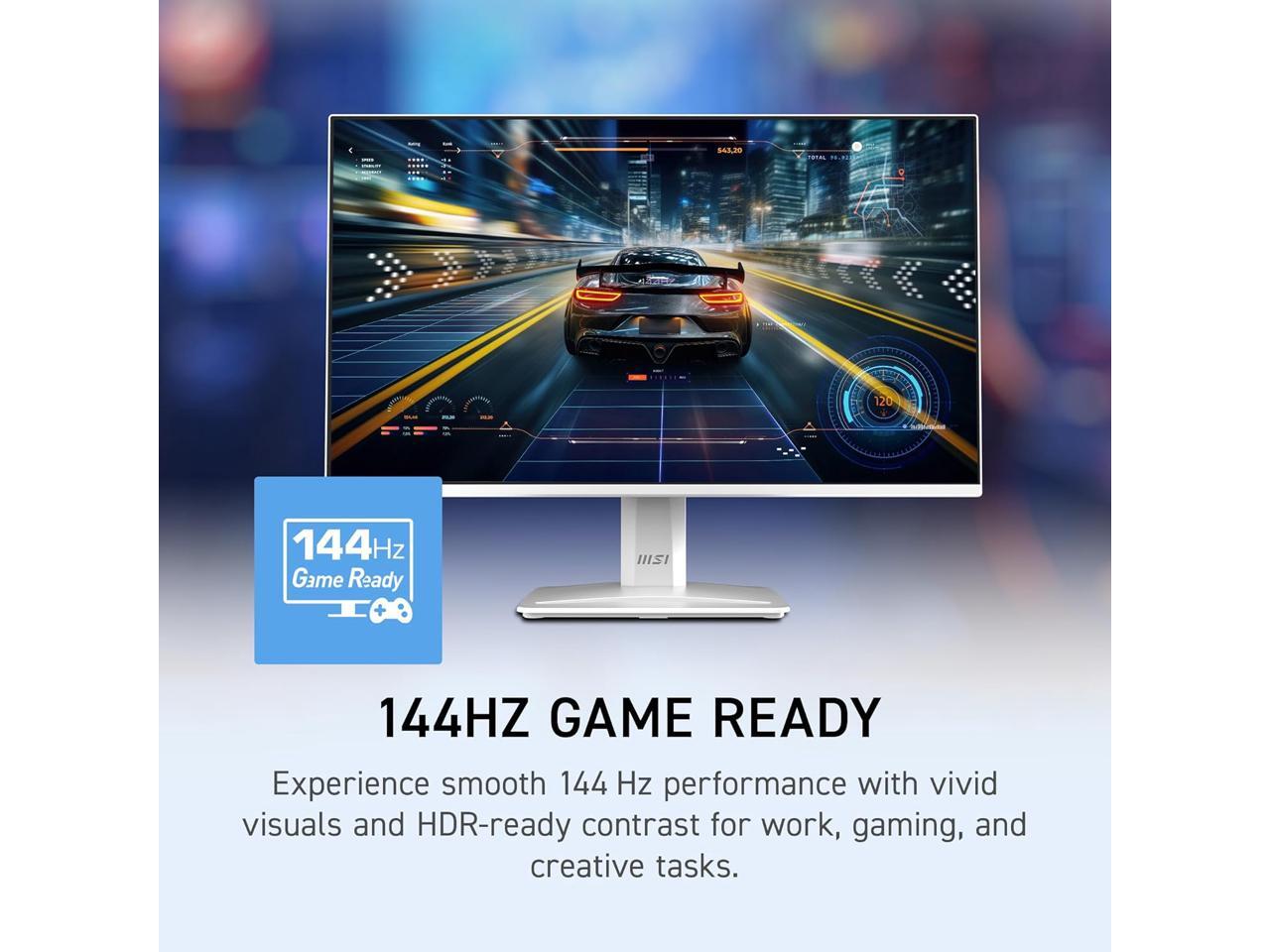 MSI PRO MP243W E14 24-inch IPS 1920 x 1080 (FHD) Computer Monitor, 144Hz, Adaptive-Sync, HDR Ready, HDMI, Display Port, VESA Mountable, Tilt, 4-Side Slim Bezel, 1ms, White