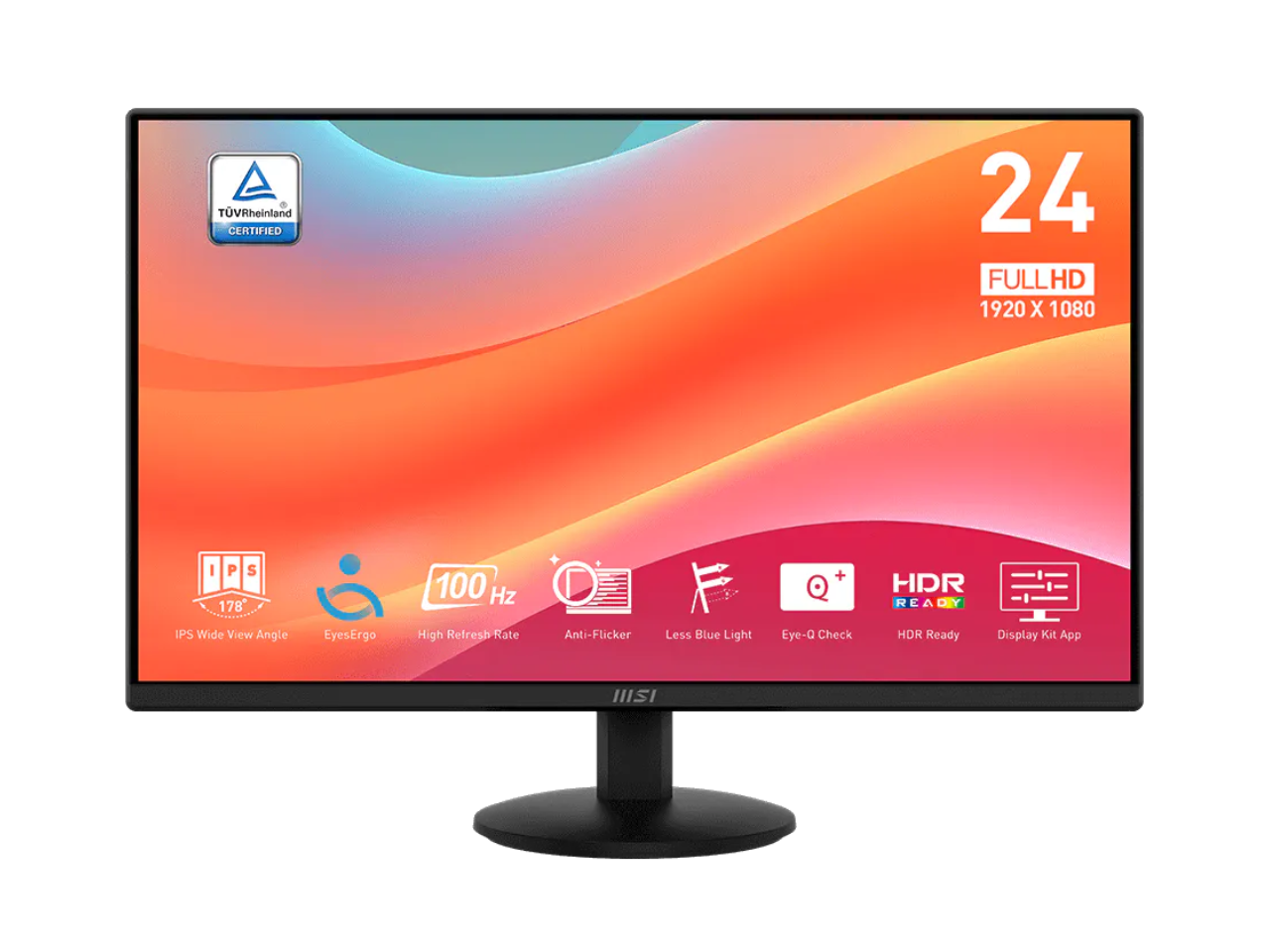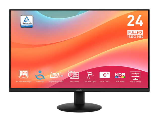 MSI PRO MP242LE 24" IPS 1920 x 1080 (FHD) Computer Office Monitor, 100Hz, Adaptive Sync, HDMI, DisplayPort, Tilt, 4-Side Slim Bezel 1ms, Black