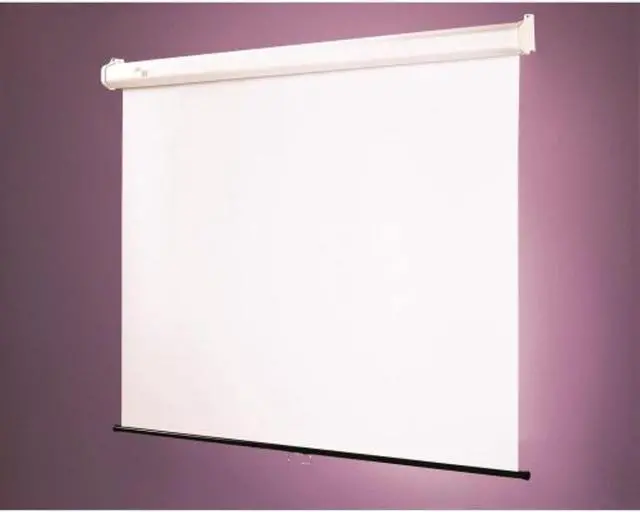 Highest quality spring-roller projection screen for wall or ceiling mounting. Includes the AutoReturn Spring Roller. For small to medium sized groups. Spring-roller operated. Housed in pentagonal steel case with a scratch-resistant white polyester finish and matching endcaps. Endcaps form universal hanging brackets for attachment to wall or ceiling. The AutoReturn Spring Roller includes a built-in inertia reduction mechanism. With AutoReturn the screen unrolls in the conventional manner, then slowly and gently retracts to the closed position on its own after a simple tug on the handle. Intermediate stop positions allow you to lower or raise the screen completely, or stop at any point in between. Prevents potential damage to the dowel or screen surface through repeated impact with the case.