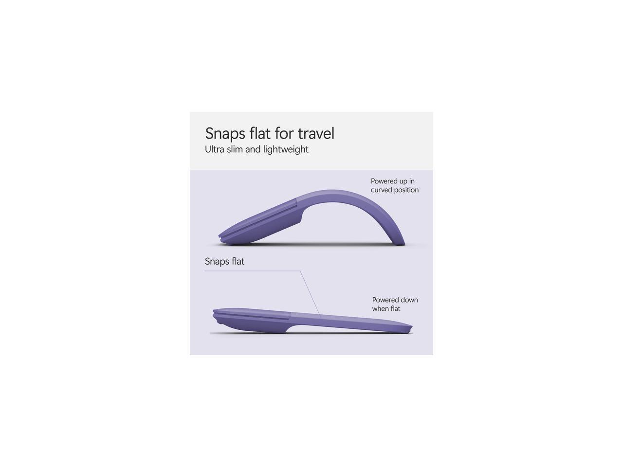 Simply snap Surface Arc Mouse into its curved position to power up, and snap again to flatten and power down.