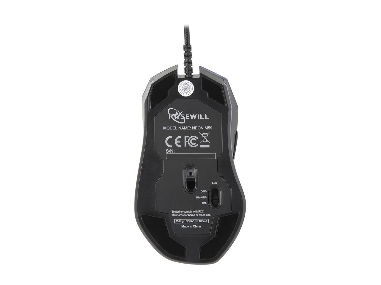 Rosewill NEON M59 Wired Gaming Mouse with Optical Gaming Sensor, On-The-Fly 10000 DPI, Ergonomic Hand Grips, 6 Programmable Buttons with 11 RGB Backlight Modes