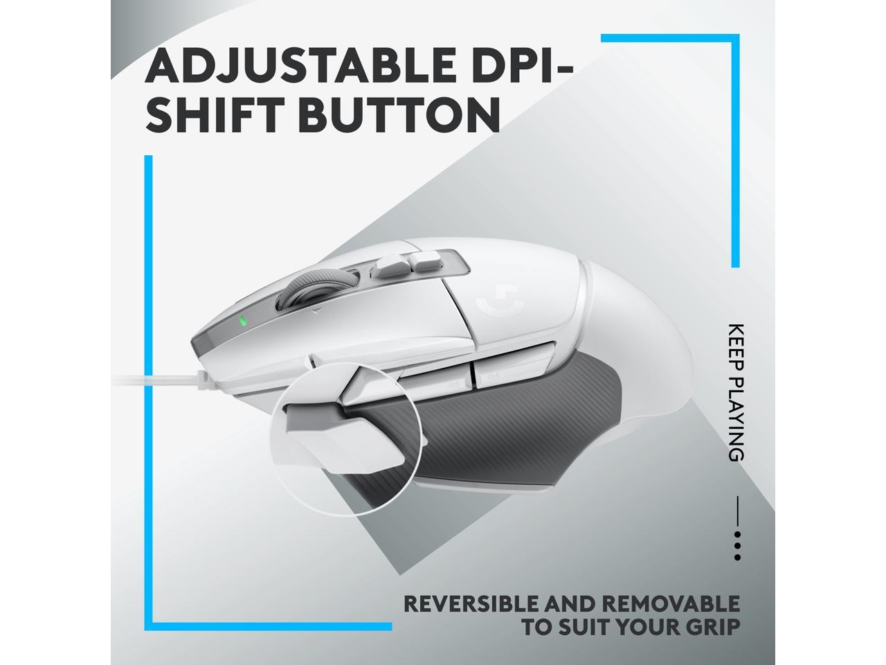 - Redesigned DPI-shift button: This wired optical gaming mouse features a reversible and removable DPI-shift button for precise customization depending on your grip and preference