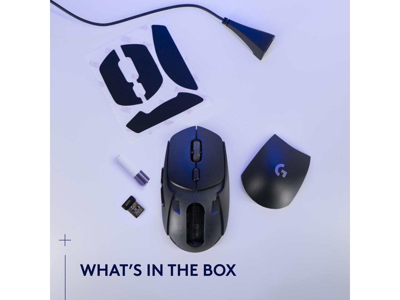 - What’s in the Box: G309 LIGHTSPEED computer gaming mouse, LIGHTSPEED receiver, receiver extender cable, AA battery, grip tape, user documentation