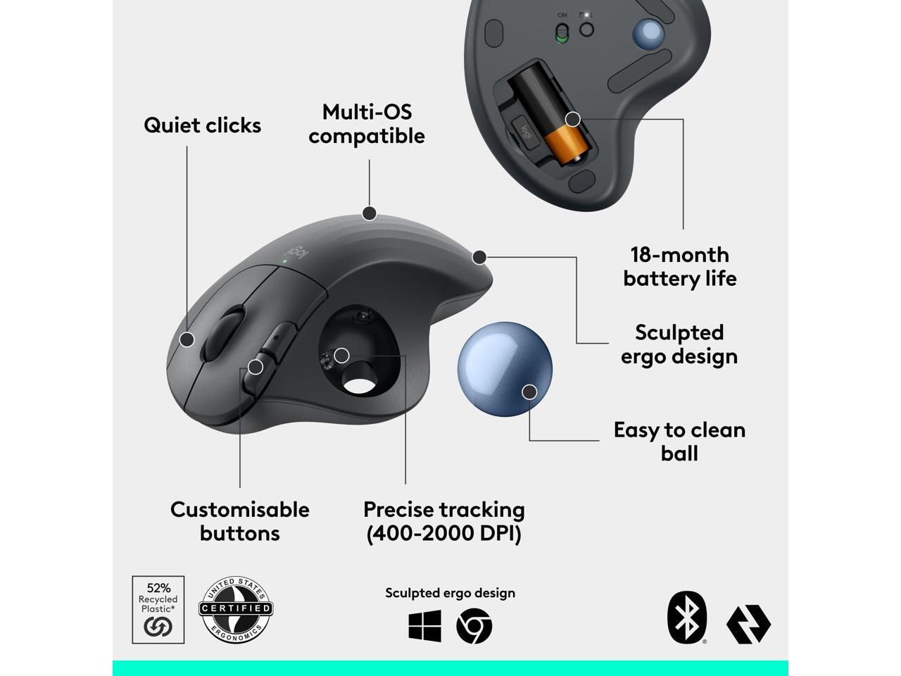 Logitech ERGO M575s Black + Blue Ball Wireless TrackBall Wireless Trackball (Black+Blue Ball)