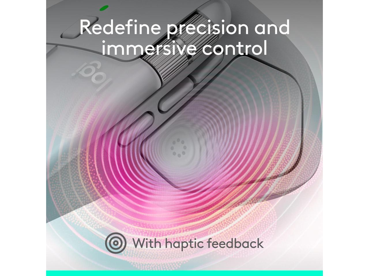 - MX Master 4 brings immersive control and precision you can feel with haptic feedback.
