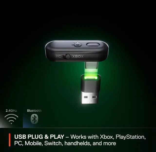 The nano-sized adapter makes your headset fully Xbox, PS5, Switch and PC compatible while keeping nearby ports accessible with an L-shaped design.
