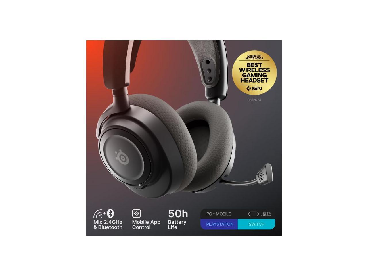 SteelSeries Arctis Nova 7 Wireless Gen 2 Gaming Headset - Real-Time App Control, 50+ HR Play, Neodymium Drivers, Mix 2.4GHz/Bluetooth, PC, PS5, PS4, Switch 1/2, Mobile - Black