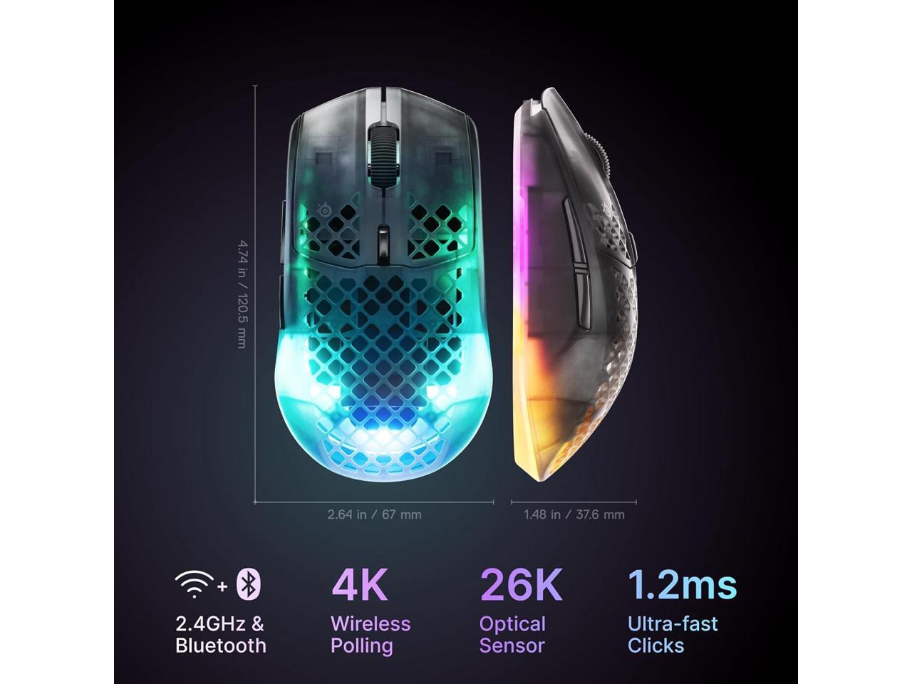 SteelSeries Aerox 3 Wireless Gen 2 - Super-Light 68g Gaming Mouse, 4K Polling, 26K DPI Optical Sensor, 200 Hour Battery, IP54 Water Resistant, 80m Click Durability, RGB, 100% PTFE Feet - Shadow