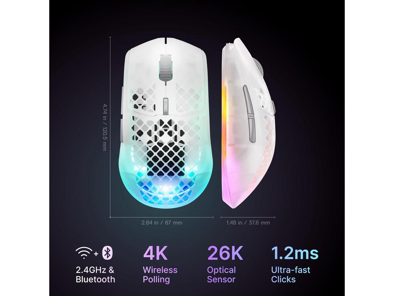 SteelSeries Aerox 3 Wireless Gen 2 - Super-Light 68g Gaming Mouse, 4K Polling, 26K DPI Optical Sensor, 200 Hour Battery, IP54 Water Resistant, 80m Click Durability, RGB, 100% PTFE Feet - Ghost