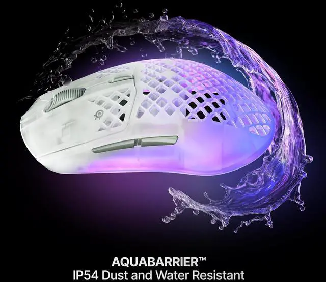 ULTRA-LIGHT, WATERTIGHT - AQUABARRIER rated IP54 to protect from water splashes, dust, and dirt getting inside the mouse, and it only weighs 68g.