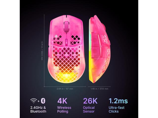 SteelSeries Aerox 3 Wireless Gen 2 - Super-Light 68g Gaming Mouse, 4K Polling, 26K DPI Optical Sensor, 200 Hour Battery, IP54 Water Resistant, 80m Click Durability, RGB, 100% PTFE Feet - Magenta Haze