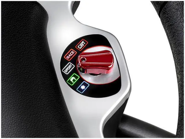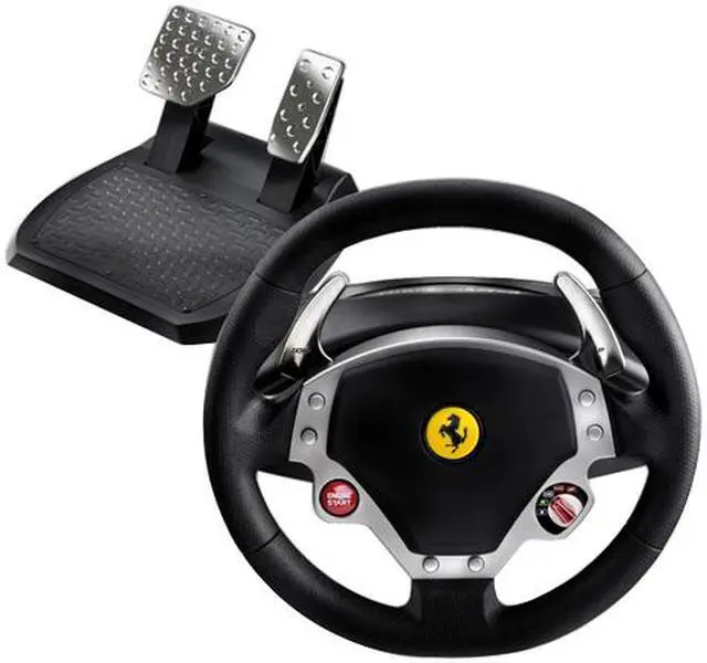 | Specifications | Official Ferrari licensed product: The brand with 99% consumer-awareness worldwide! Ferrari is synonymous with victory and competition, values that players appreciate Ferrari and Thrustmaster share the same values: passion, performance, innovation, quality 5-position "Manettino" dial: Exclusive! 5 backlit positions: Lets you configure your car directly in the race Choice of Manual or Automatic configuration High-quality materials Extra-large steering wheel: 28cm in diameter! Rubber-textured coating Metal axle and ball-bearing mechanism (maximum precision, smoothness and sturdiness) Mixed belt-pulley and gears system (Flexible and ultra-quiet Force Feedback mechanism) Ferrari style wheel-mounted aluminum sequential gearbox 2 digital, aluminum UP and DOWN levers Wide, weighted pedal set made of metal 2 pedals made of unbreakable metal Weighted base for maximum stability Magnetic resistance brake pedal Powerful Force Feedback with Touchsense technology (under license from Immersion Corporation) 10 easy access action buttons + 8 direction D-Pad |