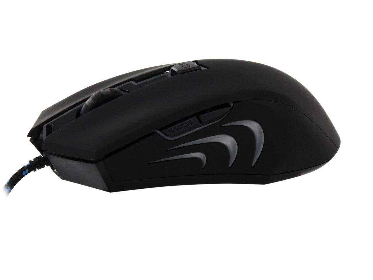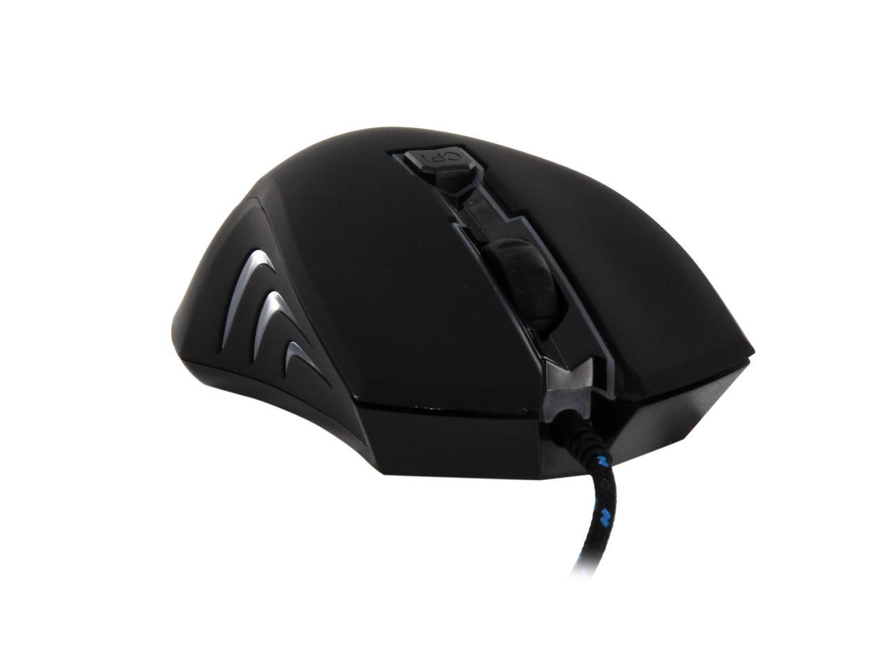Experience enhanced control and grip with the Azio GM2400 gaming mouse. A value for money choice for serious gamers, this six-button mouse comes equipped with premium 2400 DPI optical sensor that can be adjusted on the fly via a dedicated DPI button. An ergonomic design with recessed grip zone is optimized for claw grip control. The blue backlight on the logo and sides are arresting. A braided nylon cord is strong and durable for lasting performance you can count on.
