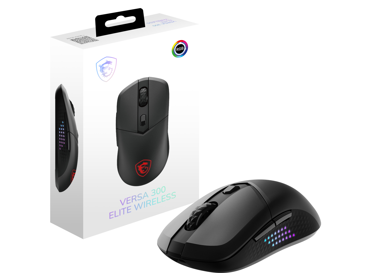 MSI VERSA300 ELITE 2.4 GHz Wireless (MSI Swiftspeed) Bluetooth 5.3 USB 2.0 Optical RGB Gaming Mouse, Up to 26000 DPI, 60 Million Clicks