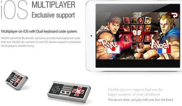 | Specifications | Size and Panel: 2.09" x 4.86" x 0.62" Xtander: 2.22" x 4.96" x 0.57" Mode: Bluetooth Joystick Bluetooth Keyboard iCade mode Emu-Touch Screen mode Wii remote mode Wire USB controller More functions are working in progress Connection: Bluetooth wireless, USB cable wire both support Keys: D-Pad, START, SELECT, A, B, X, Y, L, R Battery: 480mAh Li-on battery Charge: USB port USB Cable: 1.2 meter Hardware Bluetooth 2.1, CPU and Flash Firmware can be upgraded to support more devices in the future. |