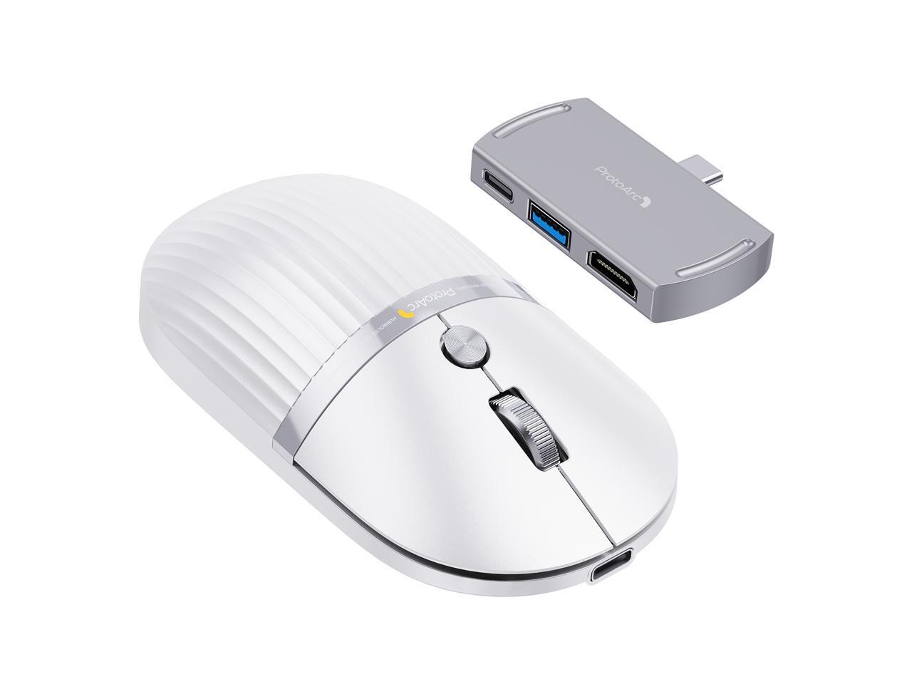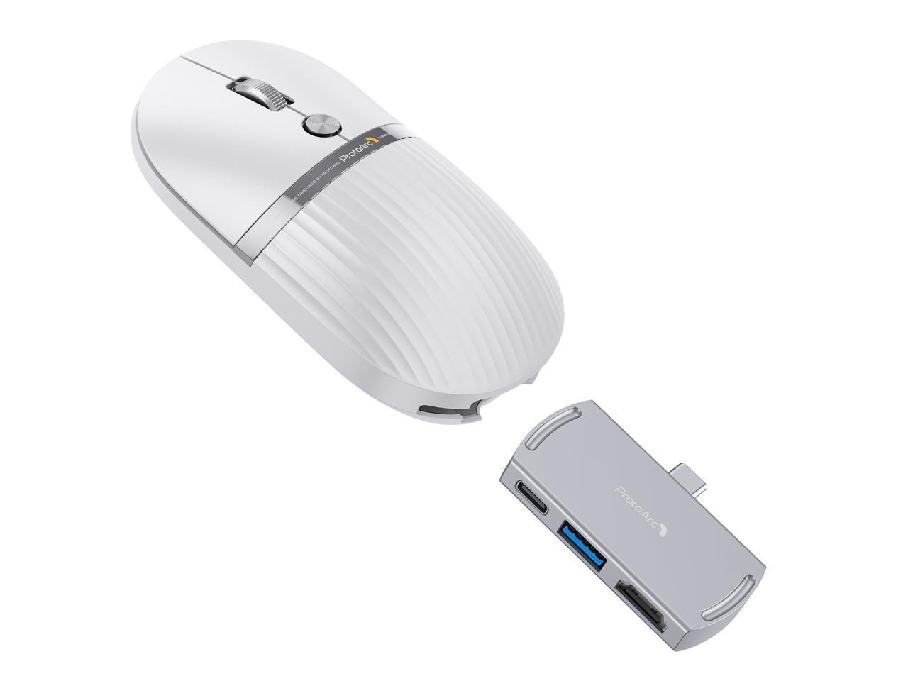 ProtoArc 2-in-1 Travel Hub Mouse - Modular HubMouse with Customized Hub - White
