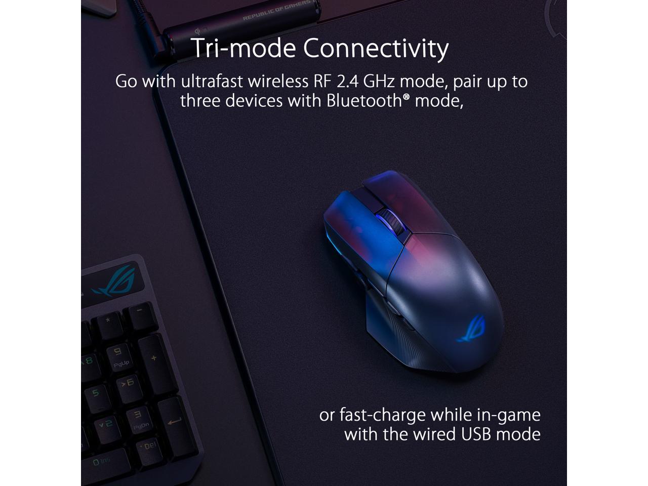 - Tri-mode connectivity: Flexibility with wired USB, low-latency 2.4 GHz RF, plus a Bluetooth® mode to pair up to three devices.