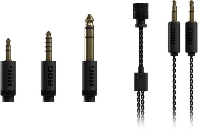 1x ROG Kithara open-back planar magnetic gaming headset 1x Dual 3.5mm-to-dual 3.5mm boom mic cable (1.8m) 1x Dual 3.5mm with 3-in-1(3.5/6.3mm single-ended, 4.4mmbalanced) plug cable (1.8m) 1x USB-C to Dual 3.5mm adaptor 2x ear cushion sets: 1x ROG hybrid fabric set, 1x ROG leatherette set 1x Frequency response measurement card 1x Warranty booklet 1x Quick start guide