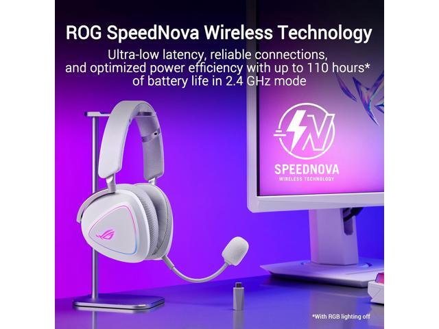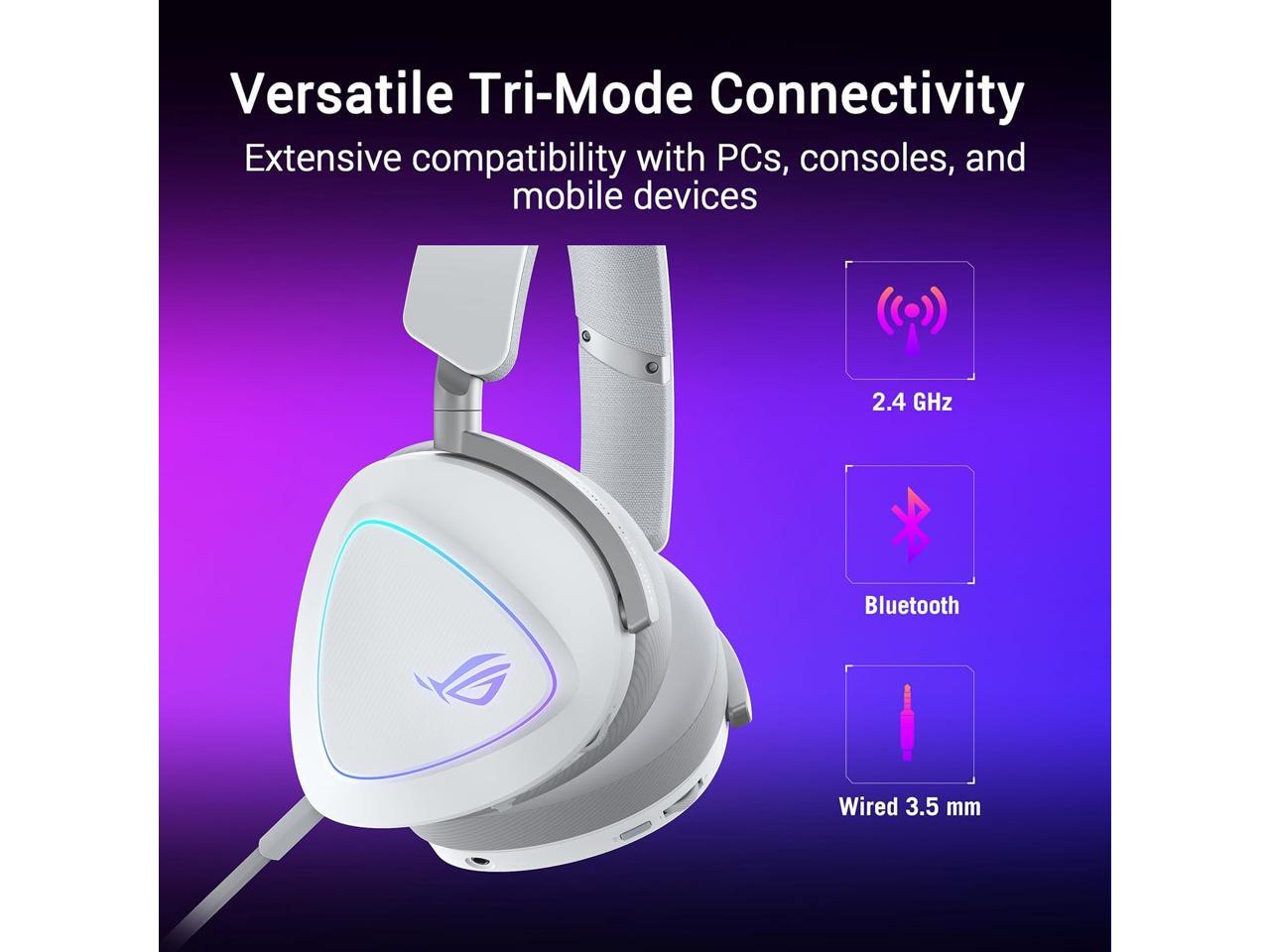ASUS ROG Delta II Wireless Gaming Headset (50mm Titanium Drivers, ROG SpeedNova, 10mm Super-Wideband Mic, 110+HR Battery, DualFlow Audio, BT, 2.4 GHz, 3.5 mm, For PC, Switch, PS4, PS5, Xbox) - White