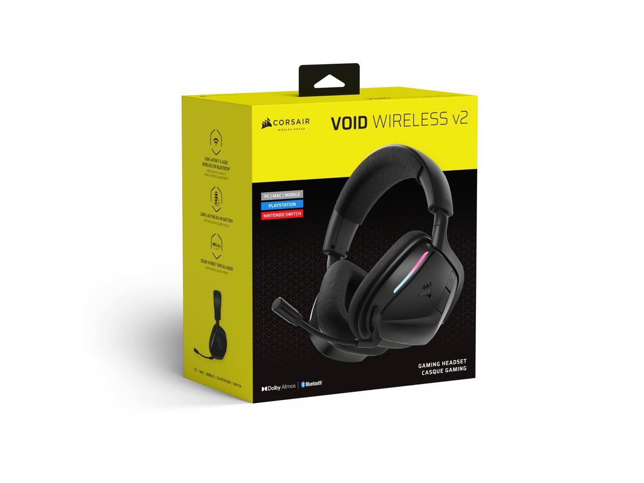 Corsair Void V2 Wireless Gaming Headset w/ Bluetooth for PC, PS5, PS4, Switch, Mobile – Dolby Atmos, 70hr Battery, Dual Wireless, Lightweight, Fast Charging – Carbon