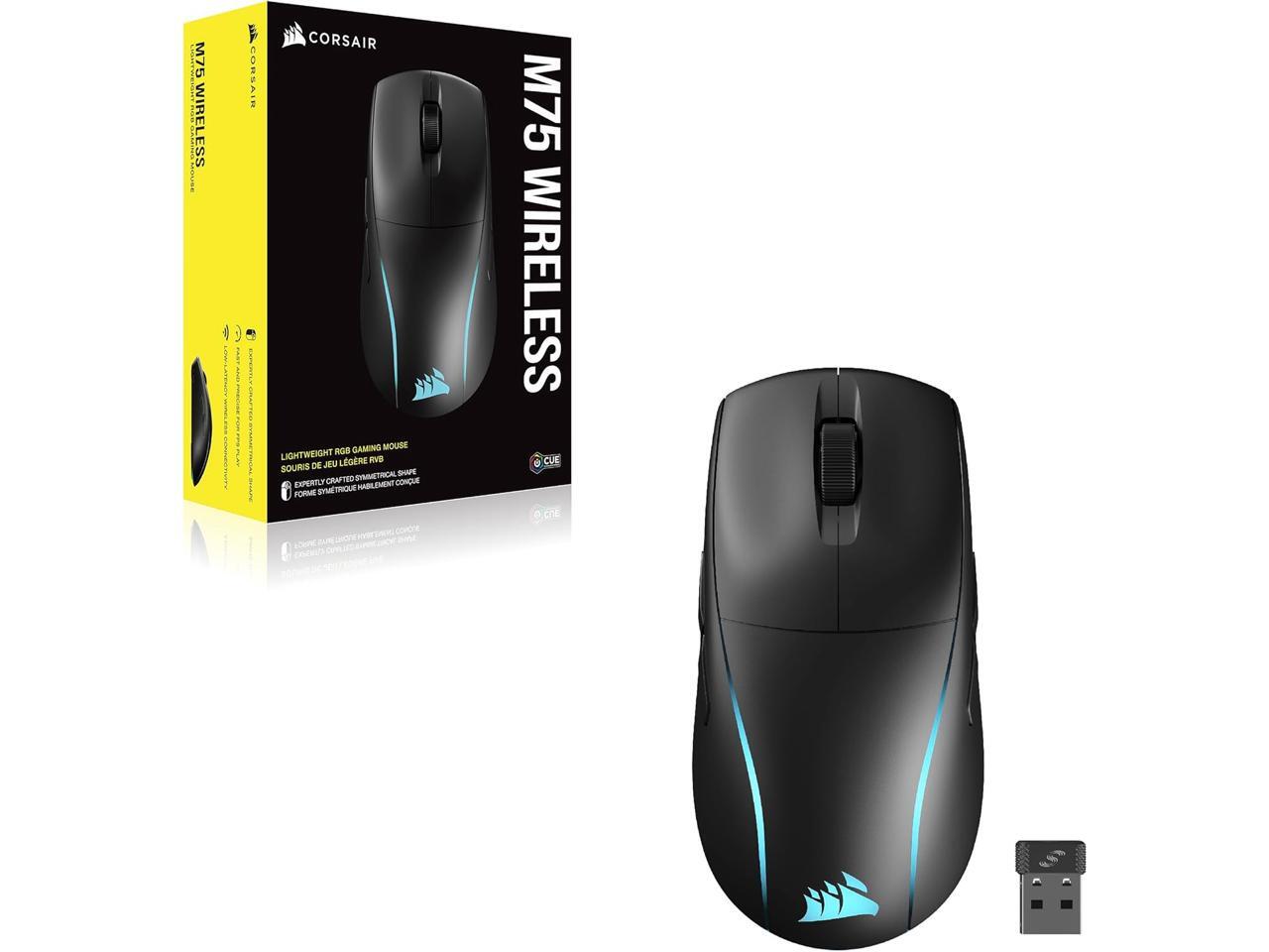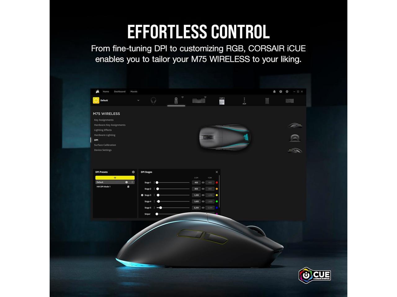 Corsair M75 Wireless RGB Lightweight FPS Gaming Mouse – 26,000 DPI, Swappable Side Buttons, iCUE Compatible, PC – Black
