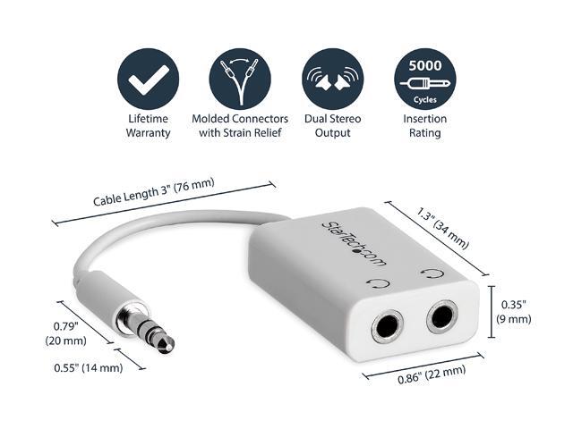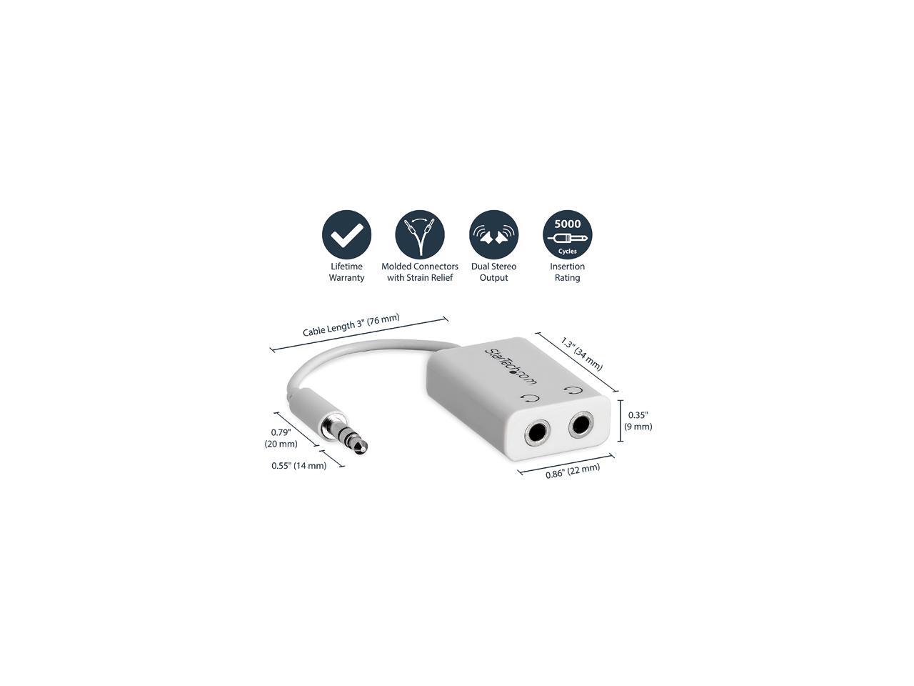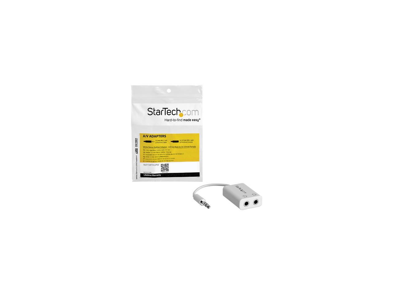 StarTech.com MUY1MFFADPW White Slim Mini Jack Headphone Splitter Cable Adapter - 3.5mm Male to 2x 3.5mm Female Male to Female