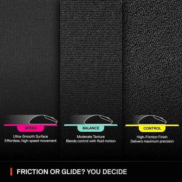 DESIGNED FOR YOUR PLAYSTYLE — The first collection of premium mousepads designed to match your playstyle. Speed, Balance and Control. Friction or Glide? You decide.