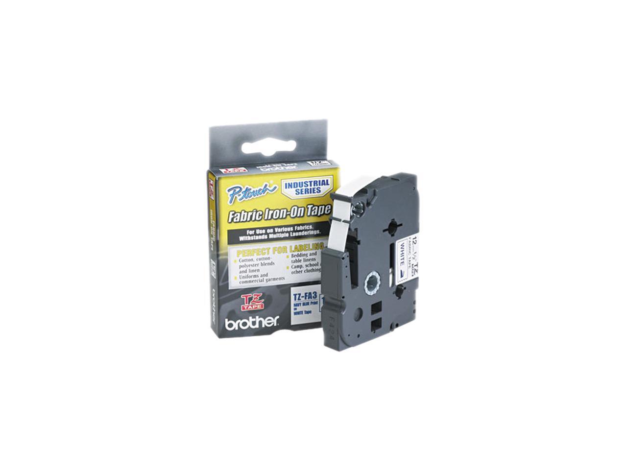 Brother TZE-FA3 12mm (0.47") Navy Blue on White Fabric Iron-on Tape for P-touch 3m (9.8 ft)