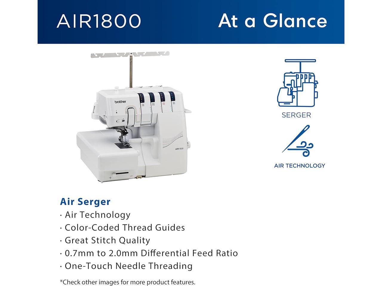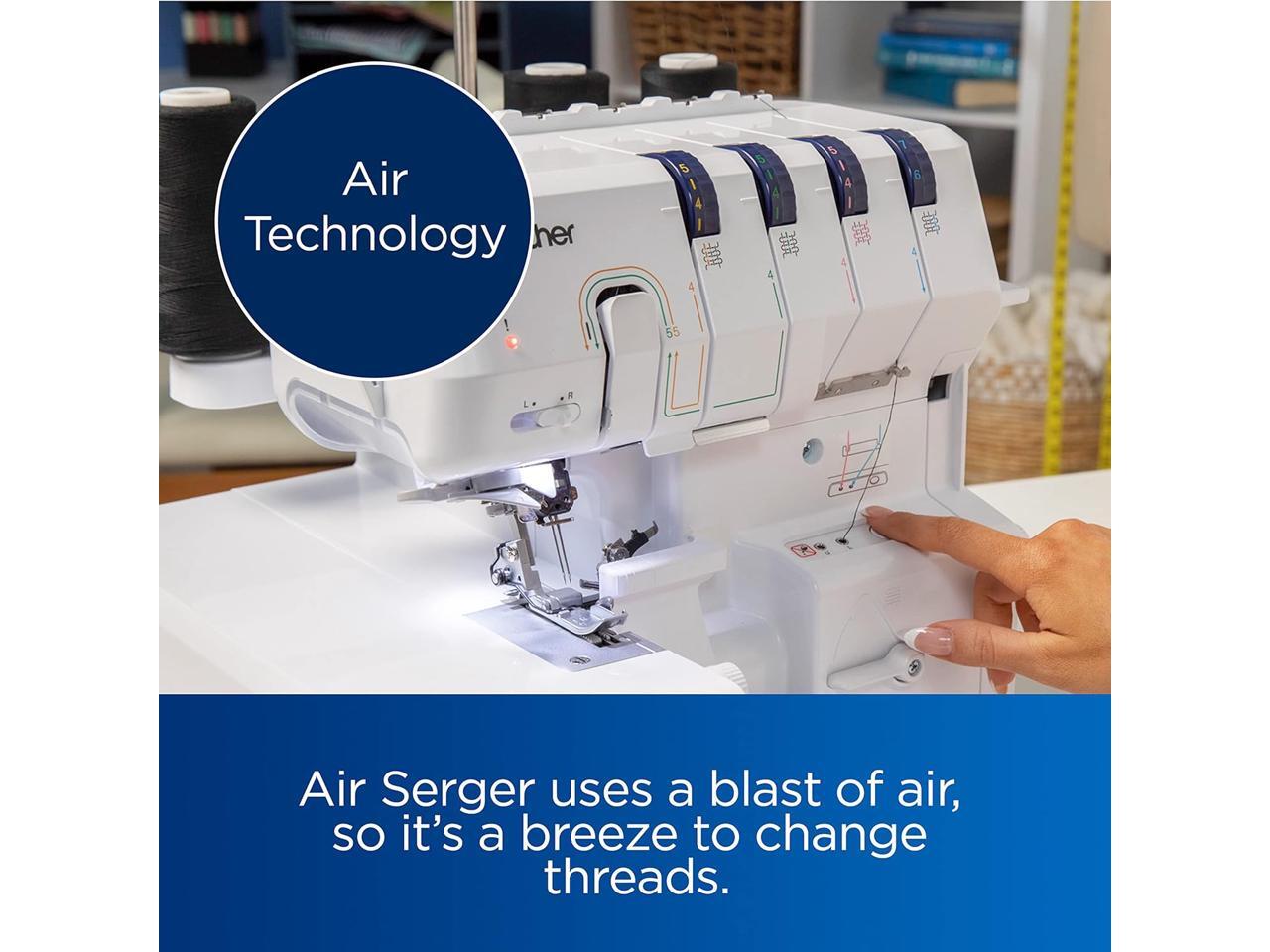 Air Technology: Thread the AIR1800 with a blast of air. With threading ports that are connected to the end of each looper by tubes, at the press of a button, a gust of air sends the threads through the looper, so, it's a breeze to change thread colors.