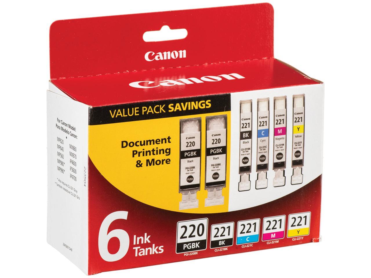 Canon 220/221 Black/Photo Black/Cyan/Magenta/Yellow Standard Yield Ink Cartridge, 6/Pack (2945B015)