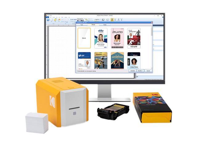 KODAK ID100S Photo ID Card Printer Kit, Includes printer, pre-loaded color ribbon, 100 cards, and KODAK Photo ID Studio badge creation software