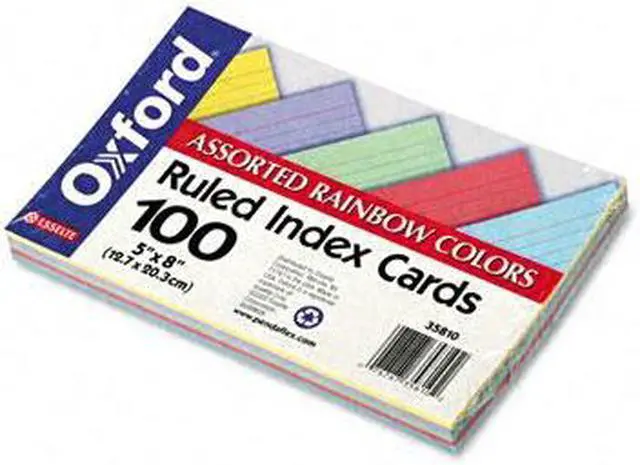 Oxford 35810 Ruled Index Cards, 5 x 8, Blue/Violet/Canary/Green/Cherry, 100/Pack