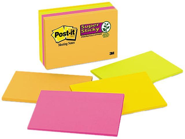 Post-it Notes Super Sticky 6445-SSP Super Sticky Large Format Notes, 6 x 4, Electric Glow, 8 45-Sheet pads/Pack
