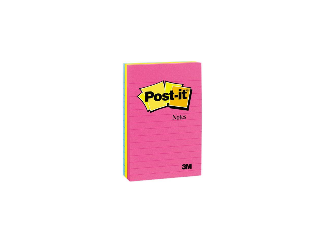 Post-it Notes 660-3AN Original Pads in Neon Colors, 4 x 6, Lined, 3 Neon Colors, 3 100-Sheet Pads/Pack