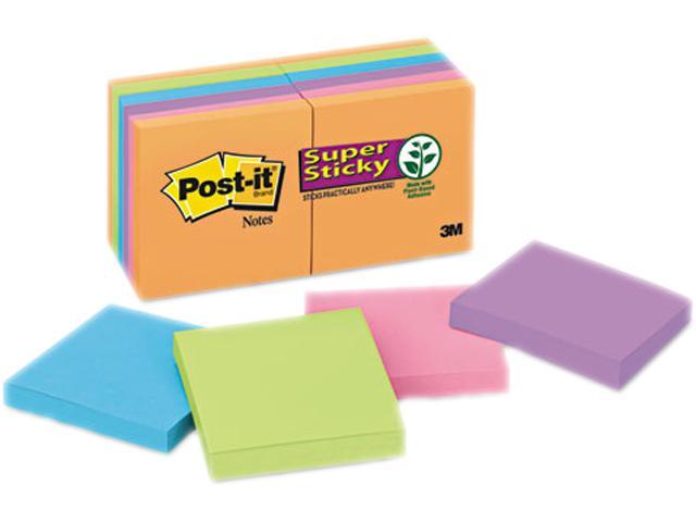 Post-it Notes Super Sticky 654-12SSAN Super Sticky Notes, 3 x 3, Five Electric Glow Colors, 12 90-Sheet Pads/Pack