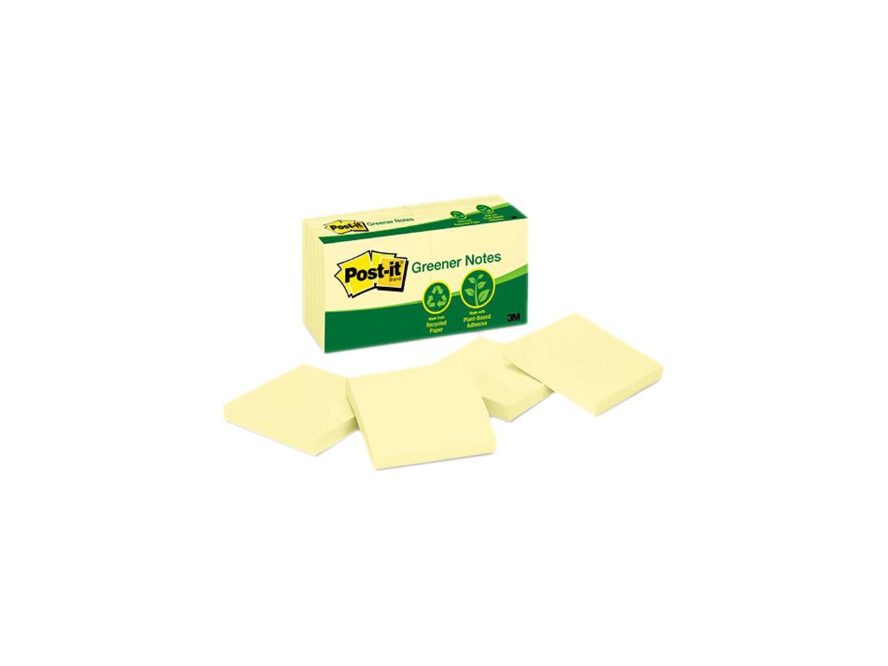 Post-it Greener Notes 654-RP-YW Recycled Notes, 3 x 3, Canary Yellow, 12 100-Sheet Pads/Pack