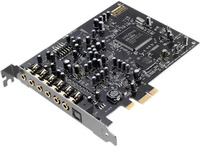 | Features | Experience the wonders of multi channel surround sound and create high quality podcasts! Hardware accelerated EAX effects let you incorporate many types of sound effects with ease! Sound Blaster Audigy Rx features an SNR of 106dB a 600 ohm headphone amp for studio monitoring and a software suite that allows full audio customisation. Creative E-MU chipset. Dual microphone inputs. Low latency audio recordings. Pristine audio recordings. Dedicated headphone amp. |