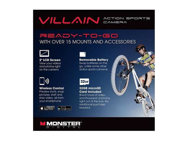 Monster Digital Villain Action Camera - 1080p 30fps HD Video with 32GB micro SD and 16 Accessories [CAMVA-1080p]
