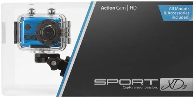 | Feature | Sport XD SXD2 12MP 1080p Action Camera No matter how extreme your sport, this action cam is designed to record epic adventures of every kind. A rugged waterproof case protects it from rain, snow, and even full submersion in up to 30' of water, and four included mounts let you attach it to bikes, snowboards, and helmets. Sharp Full-HD Video Relive your sporting triumphs on an HDTV thanks to this camera's 1080p full-HD resolution, which captures extreme escapades in stunning detail, or drop the resolution to 720p to record high-speed action at a smooth 60fps for less motion blur. Record in Rain or Shine Safely sealed inside the included waterproof case, the SXD2 will keep recording HD video in up to 30' of water, letting you capture surfing footage without worrying about what'll happen to your camera if you wipe out. Mounts for Every Sport Whether you want to capture a downhill bike run or halfpipe tricks, the four included mounts can attach the SXD2 to your sporting equipment of choice. The bar mount secures the camera to motorcycle or bicycle handlebars, a helmet mount captures POV footage, and the general-purpose adhesive and suction mounts will attach to any smooth surface, such as the nose of a snowboard or kayak. |