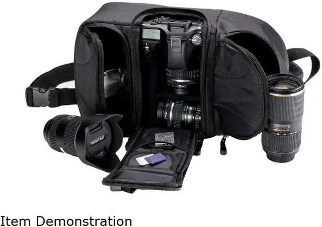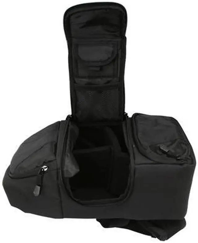 | Features | The DSLR Sling Bag is perfect for an on-the-go photographer! Comfortably wear your gear on your back like a backpack, while the single strap cross-chest design allows for quick access like a shoulder bag. Simply swing the bag under your arm to your chest for fast and easy access to your camera, lenses, and flash. Store your camera in the main center compartment, adjusting the removable spacers to accommodate your lens. The top compartment can hold a flash or lens, and the dedicated lens compartment at the bottom has 2 rigid removable dividers. There's even a detachable waist strap to help stabilize the bag during more rigorous activity. |