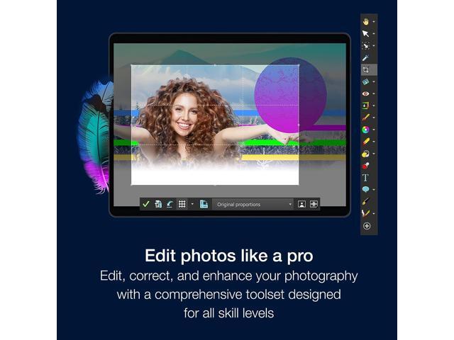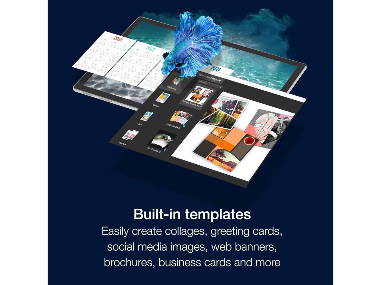 Get creative with graphic design features like layers and masks, powerful selection, intuitive text, brushes, drawing and painting tools, hundreds of creative filters, effects, built-in templates, and the enhanced Frame Tool